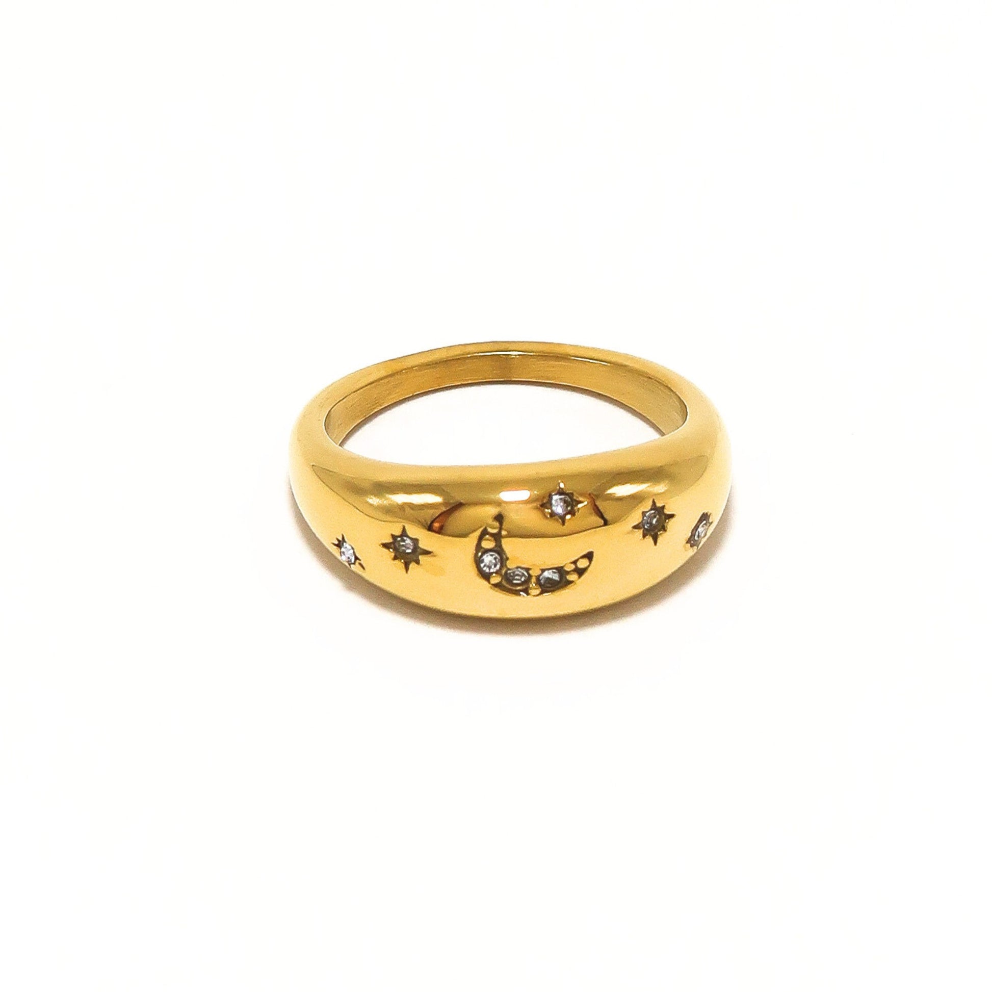 A ring with a moon and stars that can add the perfect statement to your ring stack.